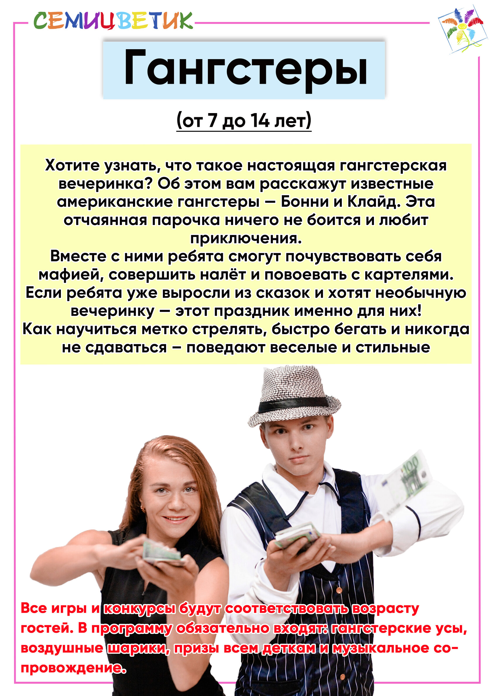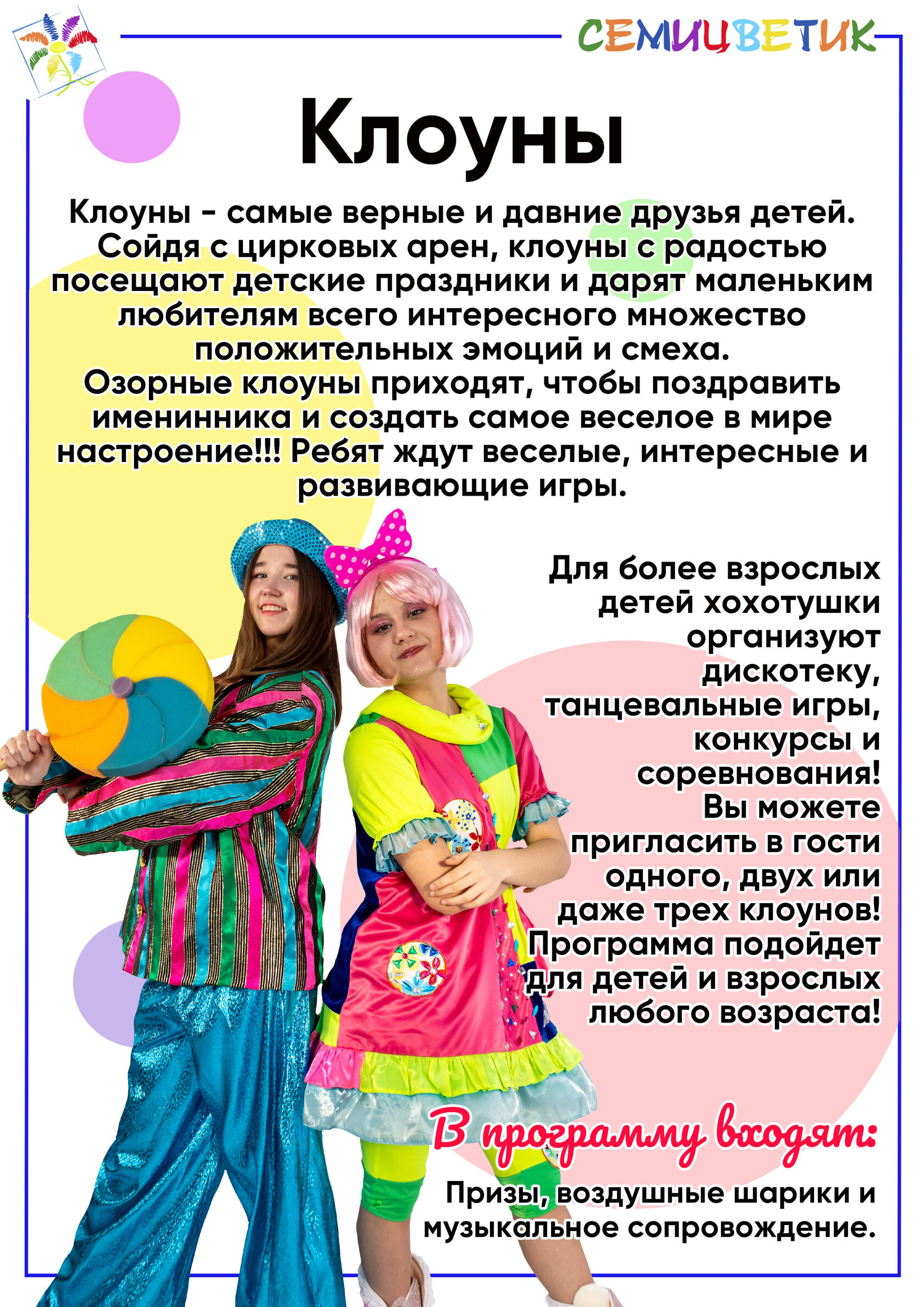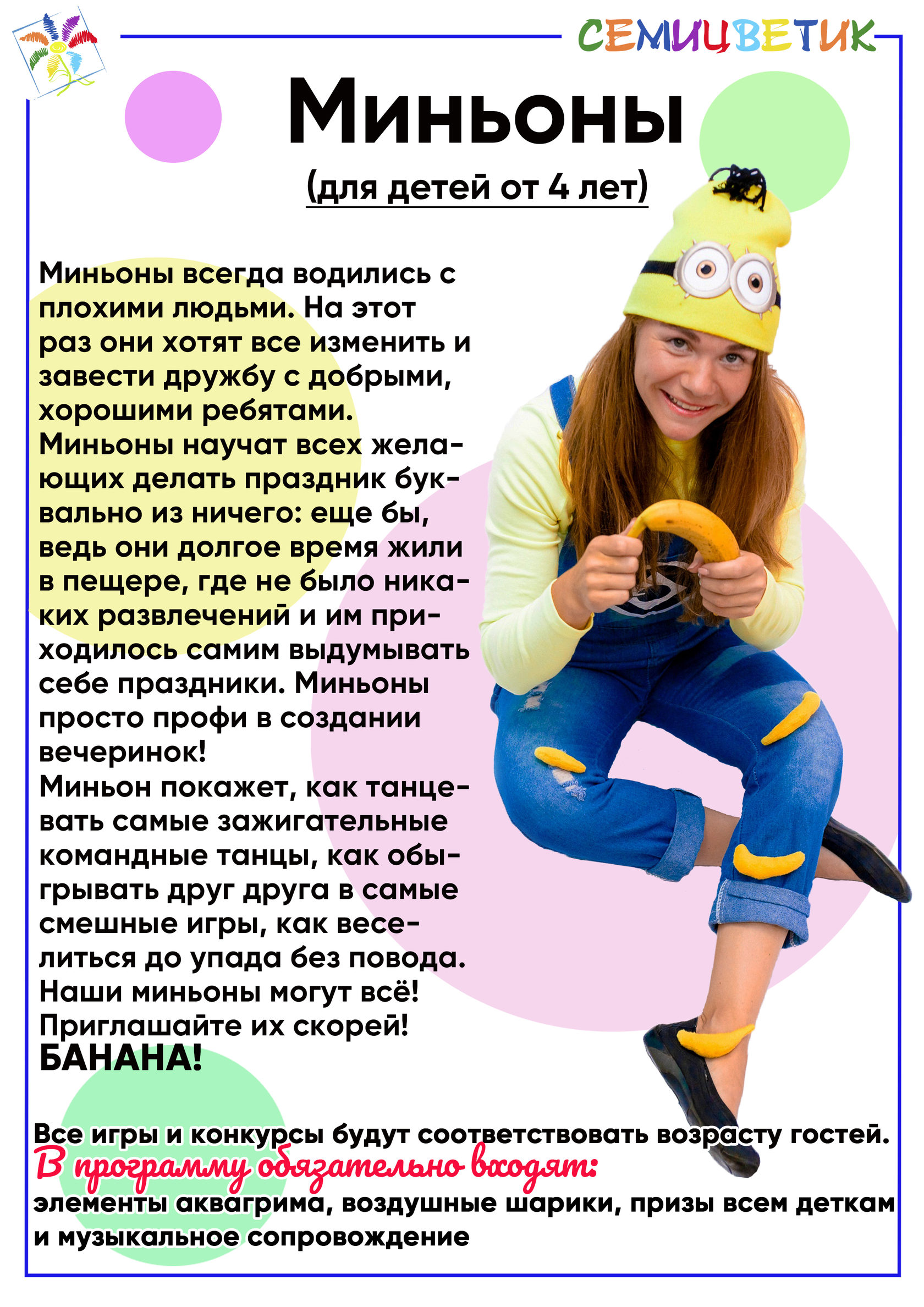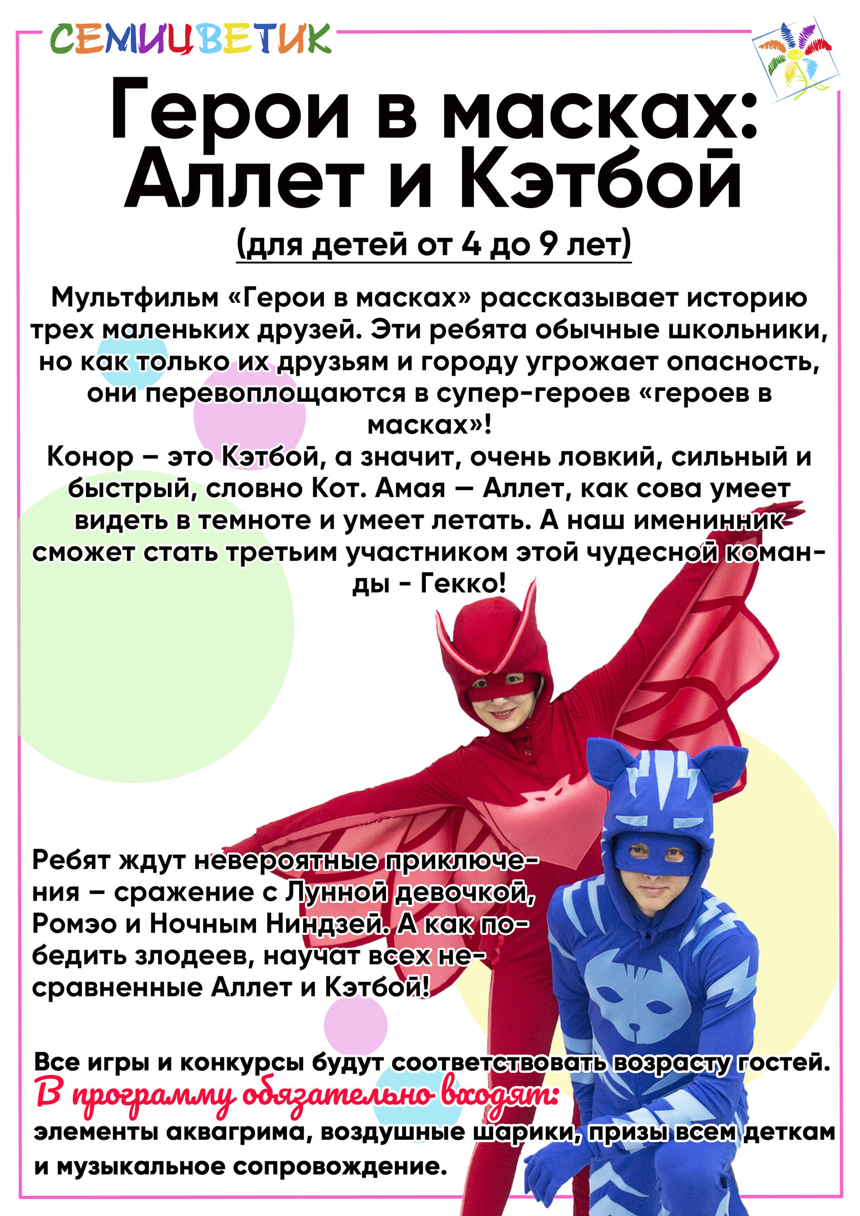 Предлагаем Вам на выбор более 50 любимых героев для праздника Вашего ребенка! Здесь Вы найдете героев мультиков, сказок, комиксов и многих других разнообразных персонажей!